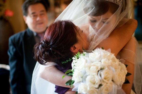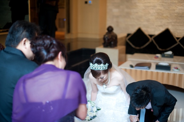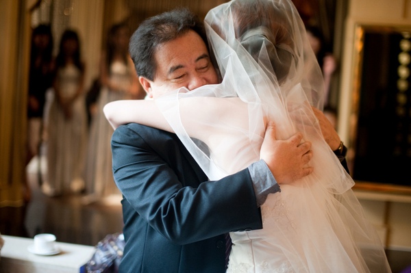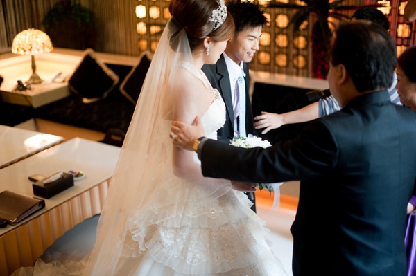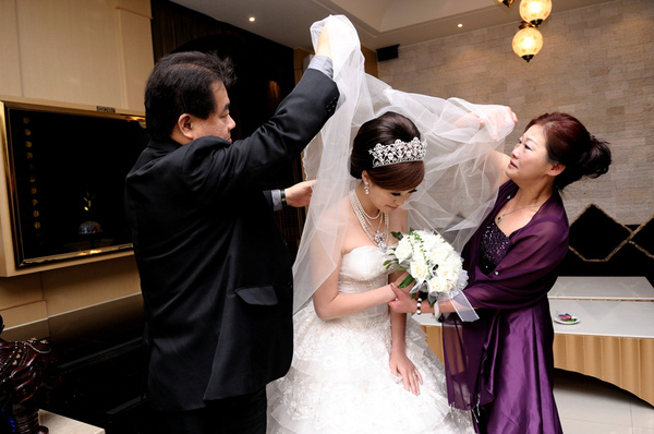 老爸跟老公說要好好對我,也祝福我們能幸福。老媽一樣泣不成聲
