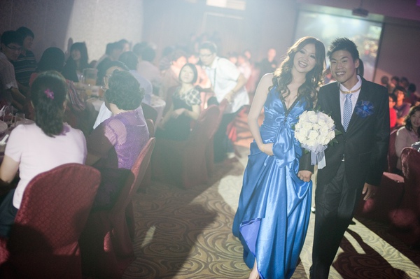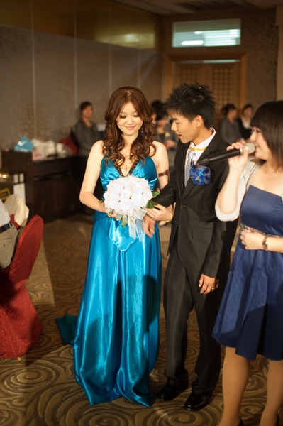 第二套的禮服是阿賢挑的,本來我還覺得穿起來不好看~~沒想到藍色亮亮的還真美耶~~