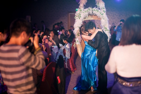在一陣閃光燈跟歡呼聲中,阿賢把我抱下來。(本來討論要用公主抱,但是高度真的不是很方便說~)