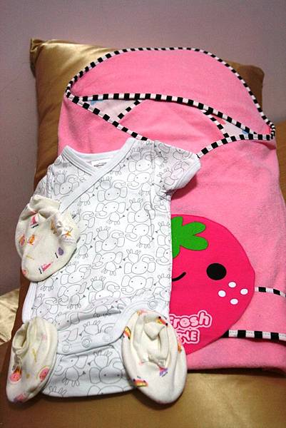 寶寶衣服(無價):同事恩典牌,女兒的小衣服跟手套腳套(用包巾好像就不用腳套的樣子,反正都帶了)