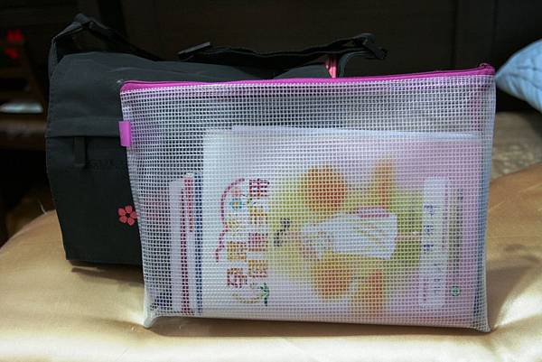 ((這個包包是我國小時候媽咪送我的,很高興可以用到現在裝女兒的東西))
