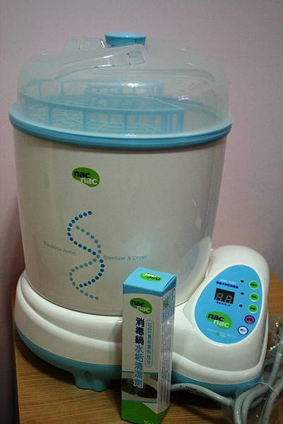 NACNAC消毒鍋(1990元):遠東百貨特價的時候買的,後來發現應該是麗嬰房常態的優惠,還有送水垢清潔劑跟三瓶240ml的奶瓶