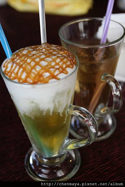 焦糖綠茶比較有賣相,蘋果醋就普普