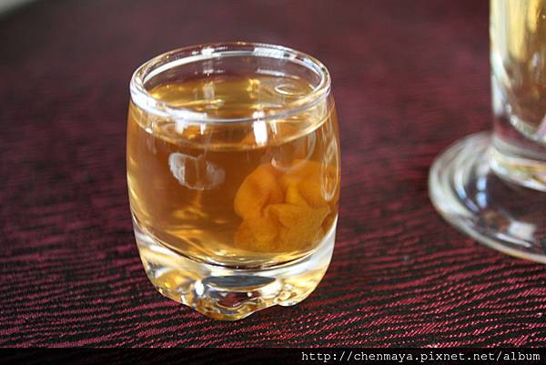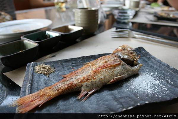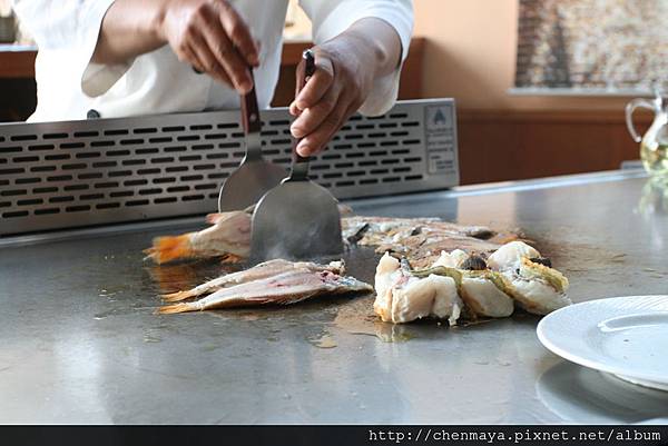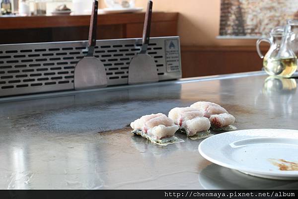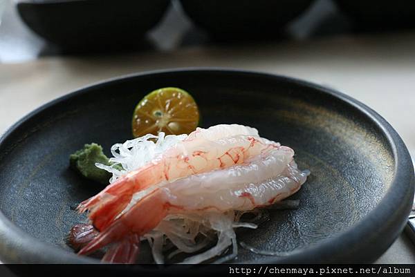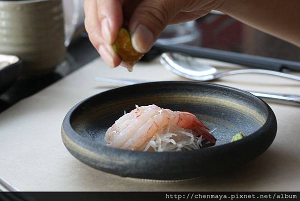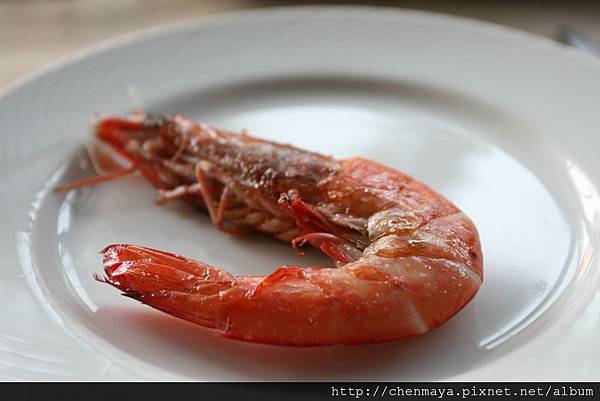 沒記錯的話這應該是白鬚蝦,廚師建議直接用嘴剝殼,才能吃到最棒的味道 (這是老公的絕活) 我是拿起來連殼吃掉~~讚!!