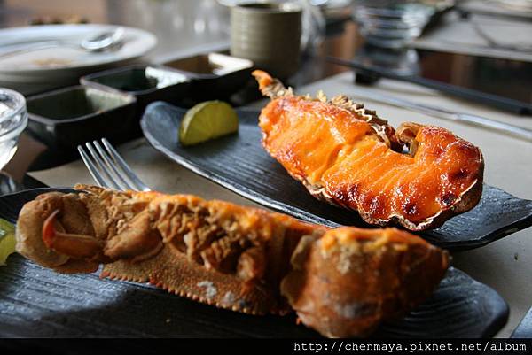 焗烤龍蝦!!!!!!!!!!! 那上面的醬非常好吃,感覺很像在吃龍蝦沙拉,醬汁有海膽跟魚卵 (((流口水