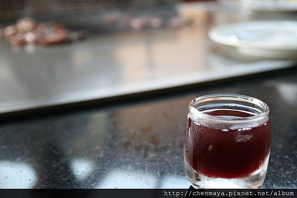 上牛排之前會先給一杯洛神花茶,吃玩肉之後解膩的