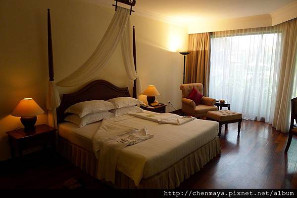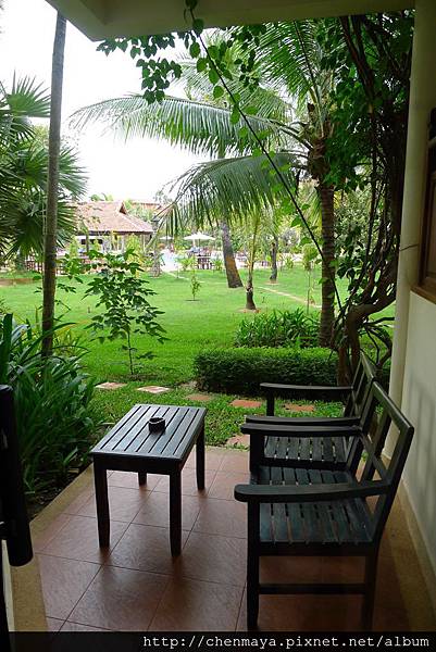 我們換成兩人一大床的房間,所以是住一樓,過了中庭