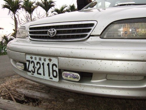 車子上面小點小點的就是千百隻小蟲的死狀...撞死+爆青漿