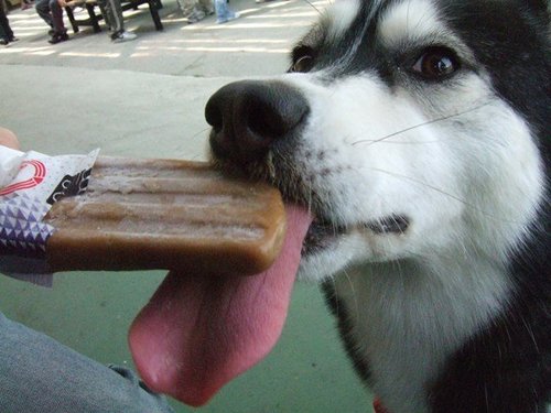台糖的冰棒請妮卡吃那天氣溫應該24度以上,大太陽很熱的!!(吃到都沾到鼻子的毛 ><)