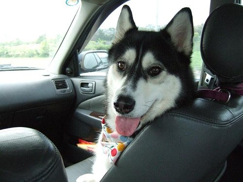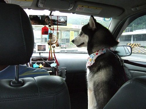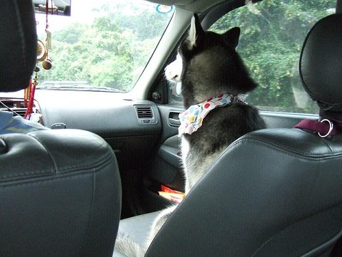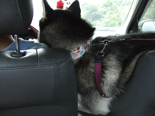 妮卡平常在後面都會一直想擠來前面→所以今天讓她當一下副駕駛體驗看看