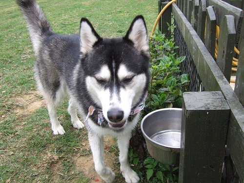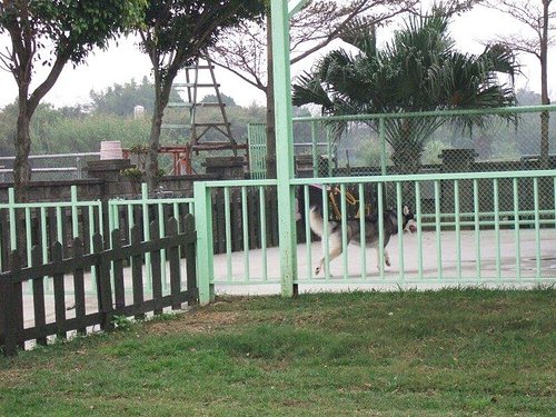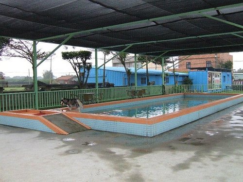 妮卡竟然從夾縫中間跑過去游泳池喝水、、、 (老闆,自己跑過去泳池應該不算錢吧...)