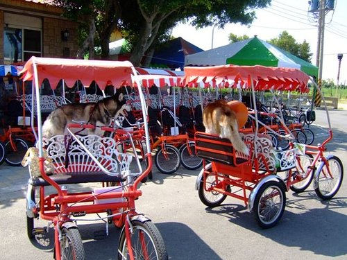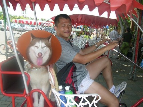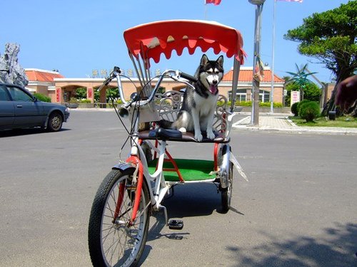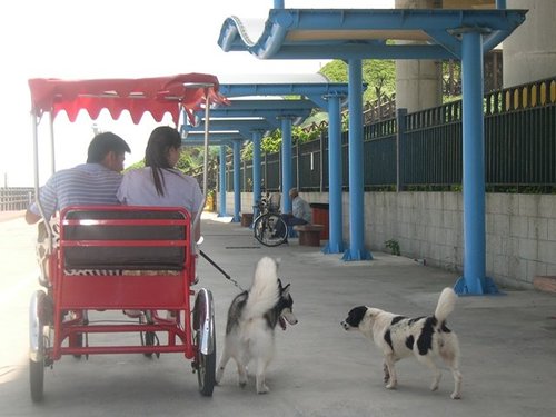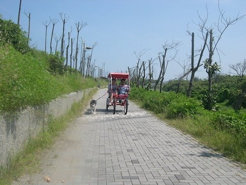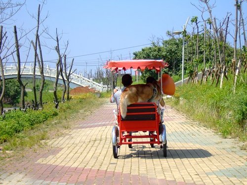 我們各挑了一台小紅包車,狗仔上車後往自行車道前往~~~