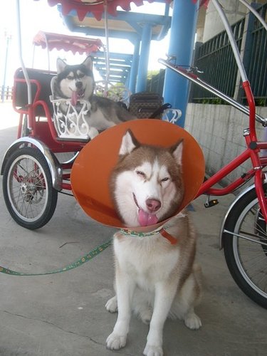 毛毛因為被鄰居的兇狗狗咬了,所以必須帶著大喇叭跟我們一起出遊