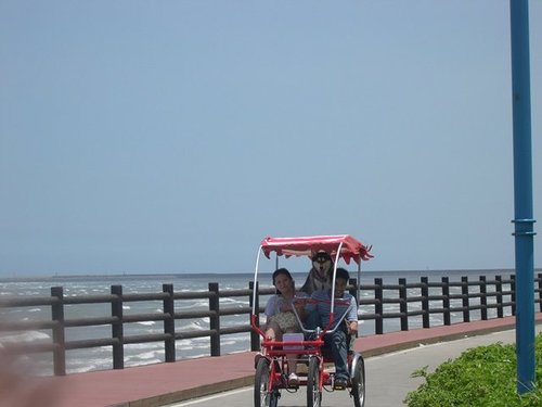 找了一台很可愛的小紅,但是,只有一個人騎...。想說剛剛妮卡爸很辛苦,我自告奮勇的當駕駛