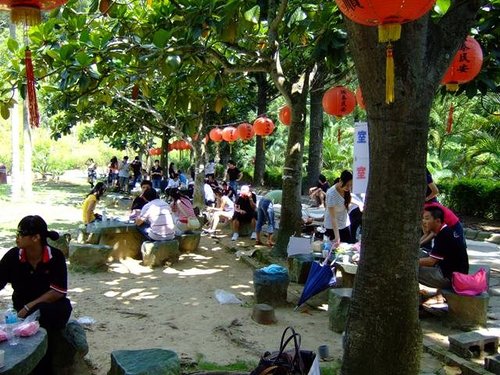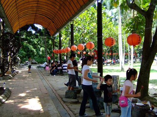 中午了~~大家準備要進入園區填飽肚子了!!生意不好的亞哥花園~應該會因為今天的聚會入袋不少吧 >