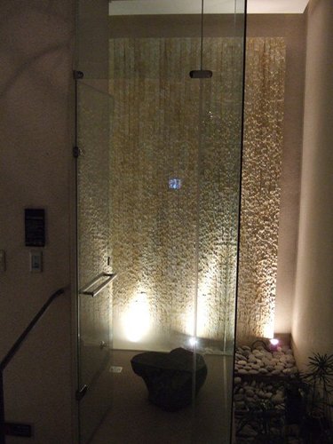 池子右邊旁邊放著大大小小的毛巾~~~從房間門看過去是一個凹下去的坑,名叫談心坑...
