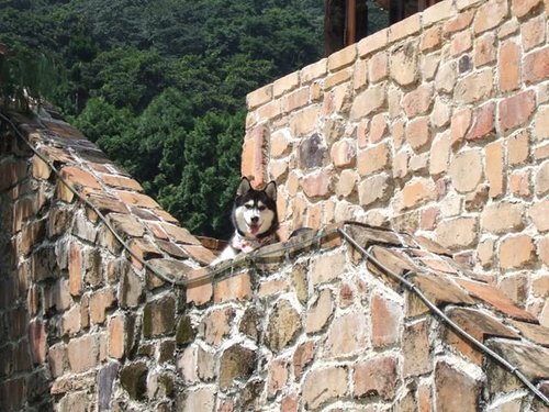 妮卡在古堡階梯上看風景~~ (我的頭不小心露出來一點 >"