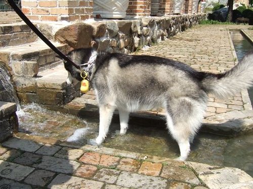 卡卡跳下去泡腳抓流水 避免被罵趕緊抓上來~~