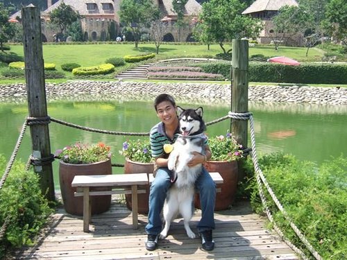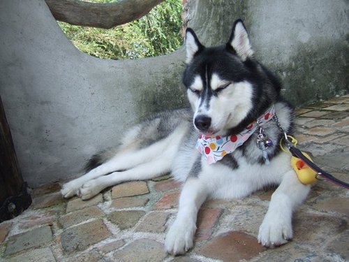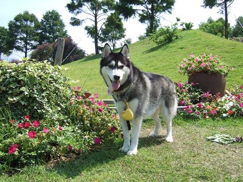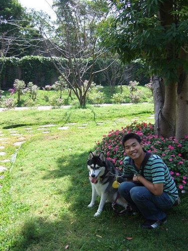 小草皮與花花草草的合照~~胸前的愛心是垃圾袋...我們的便便有隨手清起綁好丟垃圾桶歐!