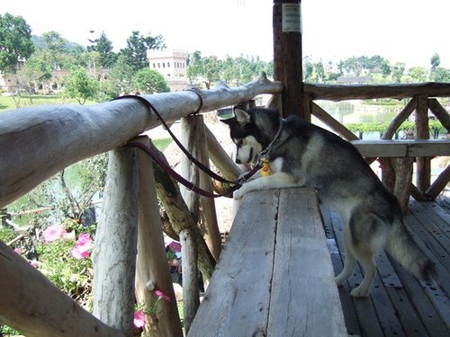 我們上到2F看風景,妮卡也找了個好位子想要爬上去吹風...