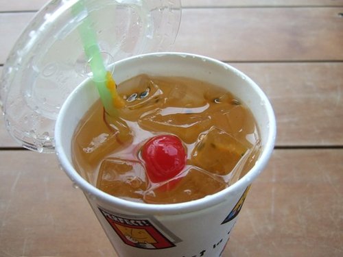 因為天氣太酷熱,所以兩百元的低消費點了一杯還不錯可以看到百香果的果汁還有薰衣草精油~