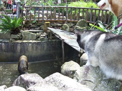 因為帶大狗所以不能搭纜車~~所以作園遊車上山,一下車我跟毛毛媽衝去買飲料~渴死了XD