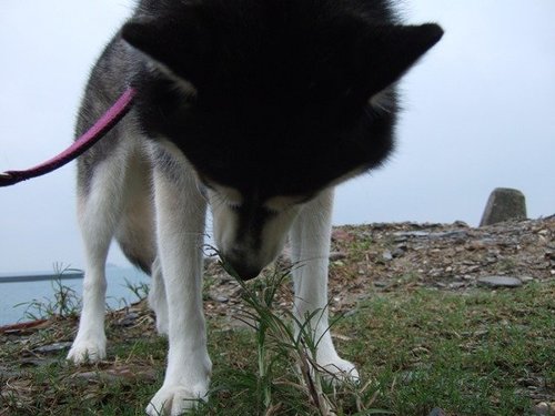 呼~~妮卡很愛吃新鮮的草~不知道是真的吃進去還是咬好玩的...
