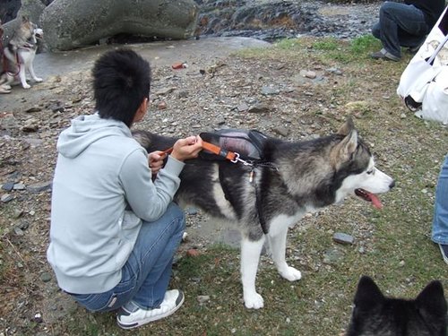 BOGI的新造型~自己便便袋、零食還有濕紙巾自己背~~