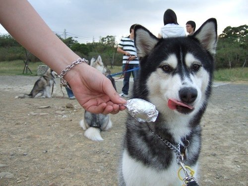 各位狗寶貝各自等著自己的雞蛋老爸老媽也都努力撥蛋中...