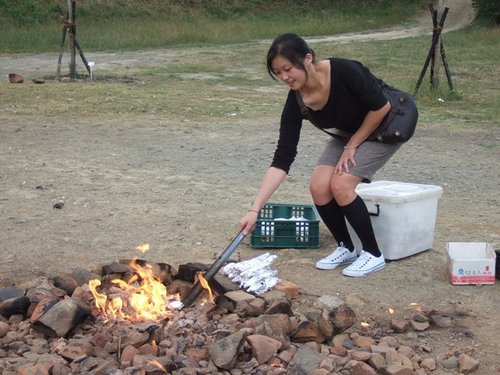 烤完之後還要慢慢撥,因為真的挺燙的。 妮卡一臉好像很開心的樣子等著我笑到眼睛不見了?!?!