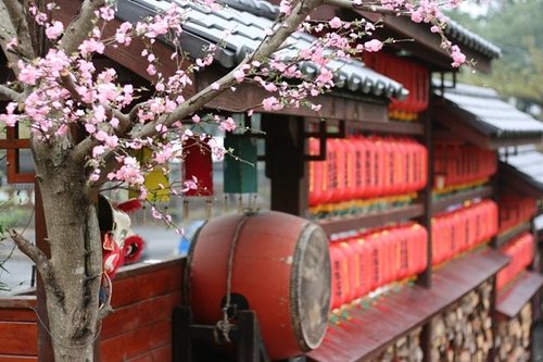 所以我們先到了"目仔寮",目仔寮其實現再也都變成了一些小商店,我跟妮卡爸也不雪拼紀念品的...