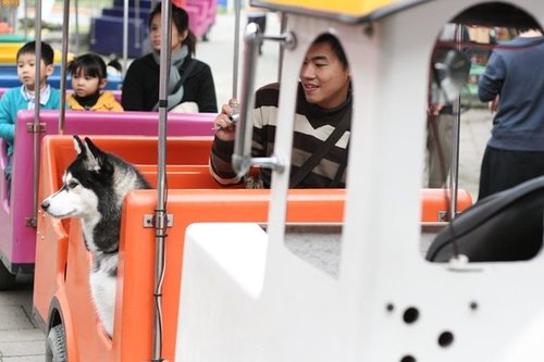 但是卡卡扭來扭去一直換邊還把頭伸出去都沒被罵...應該是歐巴桑不會說狗語吧~~哇哈哈哈