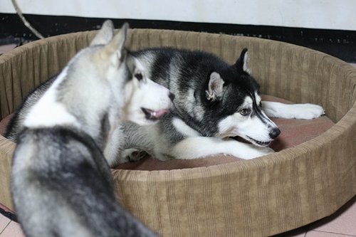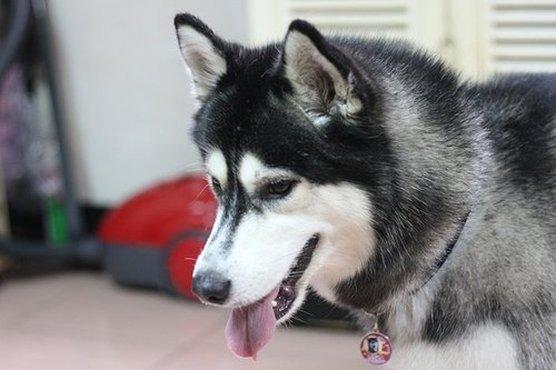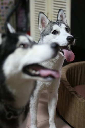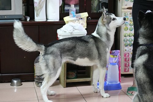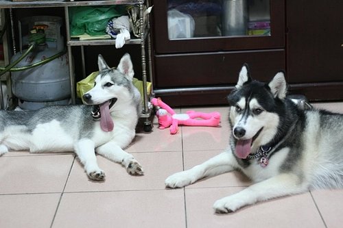 之後兩個人開始家裡狂奔~~累了趴下休息~~身瘦舌頭大的米飛~~比例真的很不搭捏 >