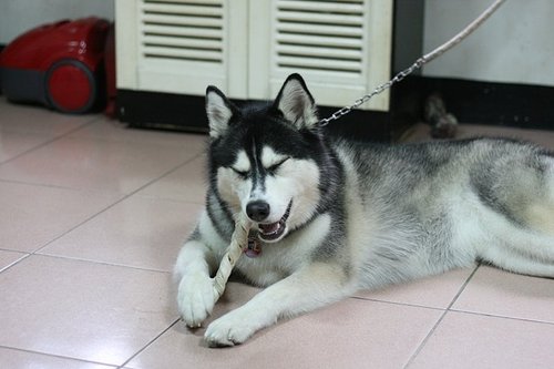 所以被處以繩刑+牛奶骨在眼前卻不能吃~