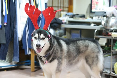 被戴上麋鹿角的卡卡~~整個臉又成"囧rz"狀了~~
