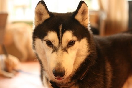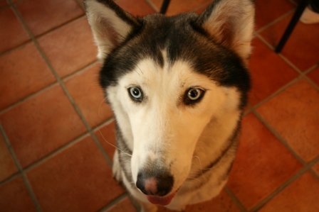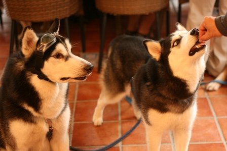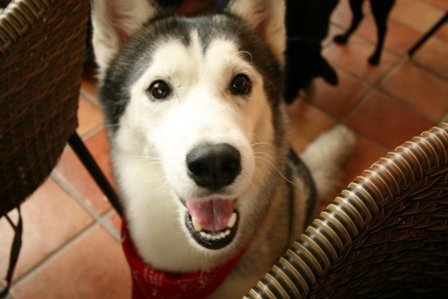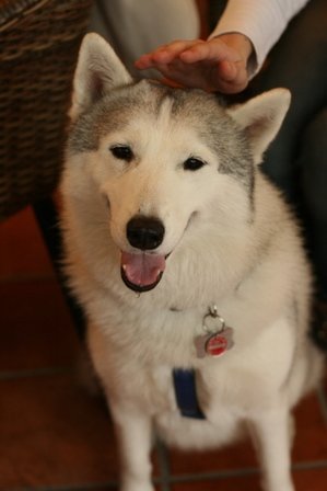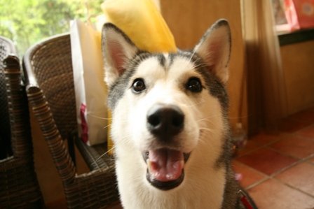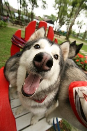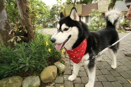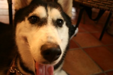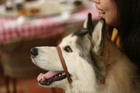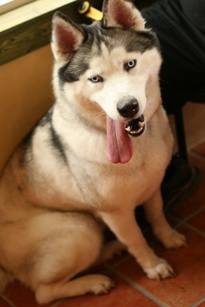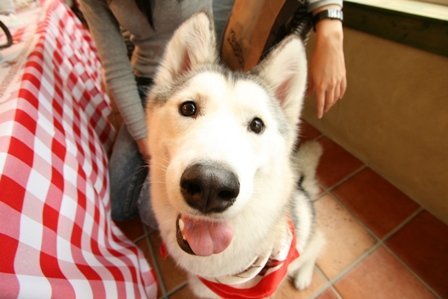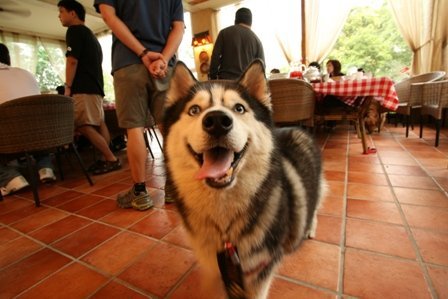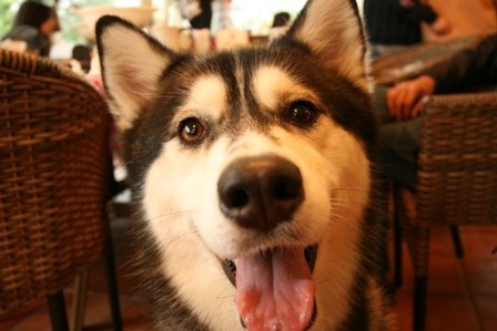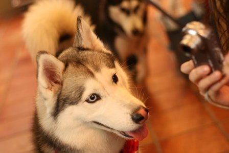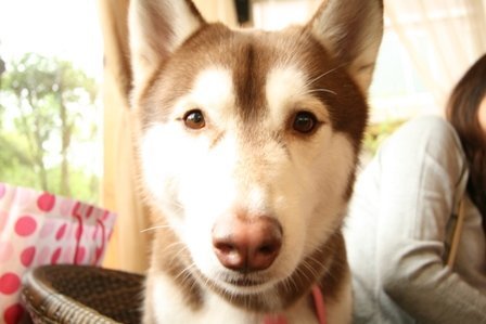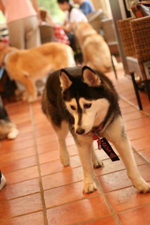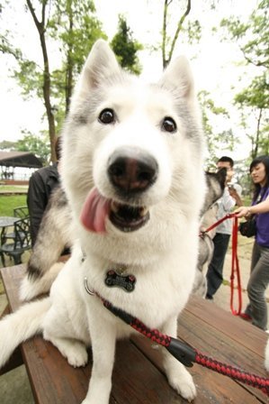 媚娘是隻很嬌媚的哈士奇脾氣也非常好,經過我們旁邊,卡卡在吃餅乾都不會搶也不會吵架
