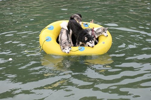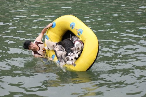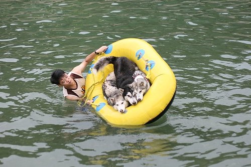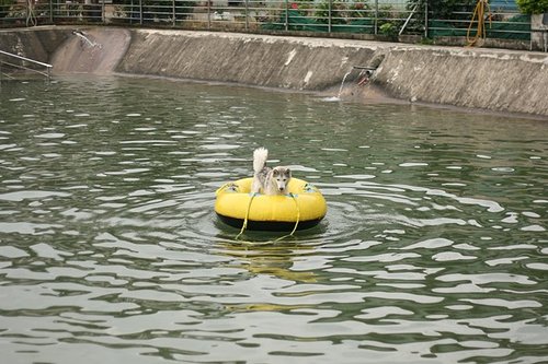 尾隨著我們到達愛狗的呆們,也被丟到船上隨波逐流去了...(此時有人懊惱著沒帶記憶卡