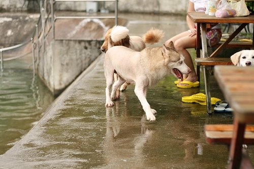 天氣微涼,一早到愛狗是PUKI跟菜頭搶先