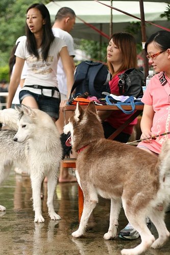 來福:小妞,一個人嗎?(來福很少看到那麼多美女,今天應該也很開心)
