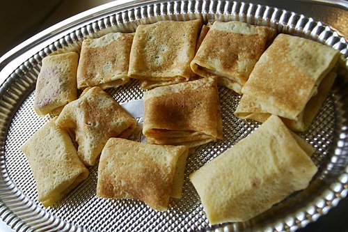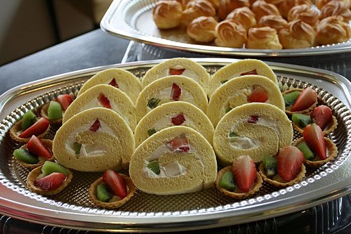 蛋糕跟水果在一起後外面加蛋皮的水果蛋捲