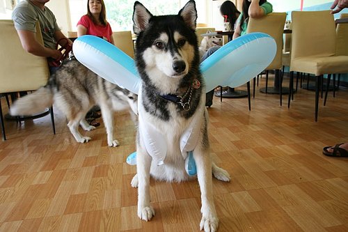 剛洗完澡的妮卡被套上天使翅膀