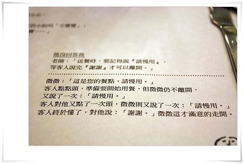 接著拿菜單幫你點菜,總共幾位他會知道要點幾份餐點,然後會問你要不要加購50元的蛋糕