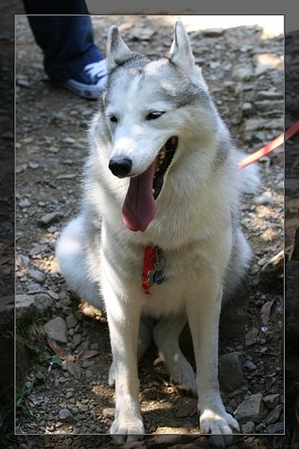 爬山行程到了一個段落,我們又回到了大涼亭,米飛從上往下看著我,很有精神的樣子~