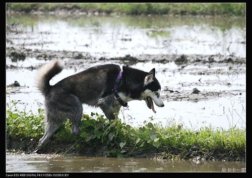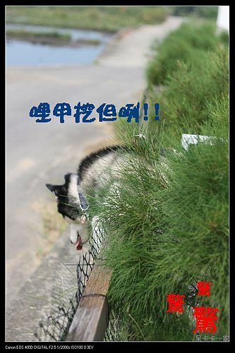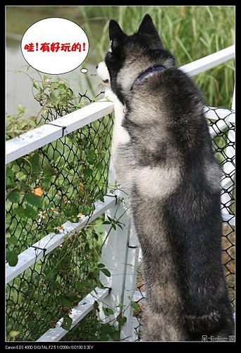 妮卡跑一跑一直往外面看...到底有甚麼好看的~~不就是爛泥吧!!