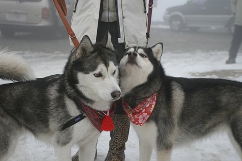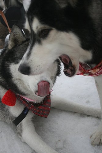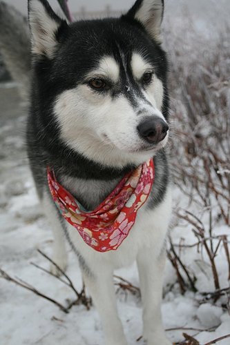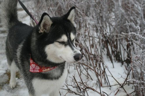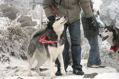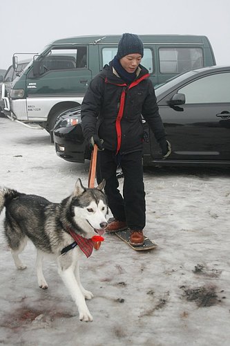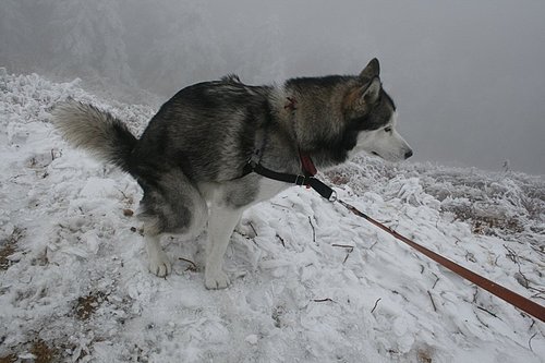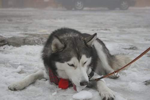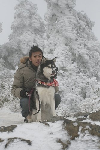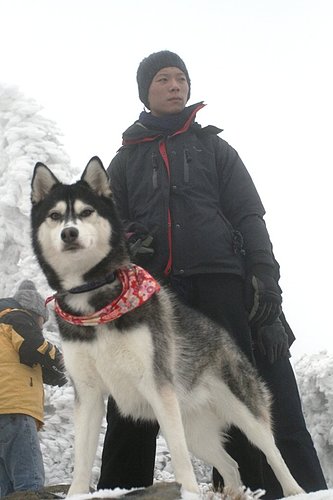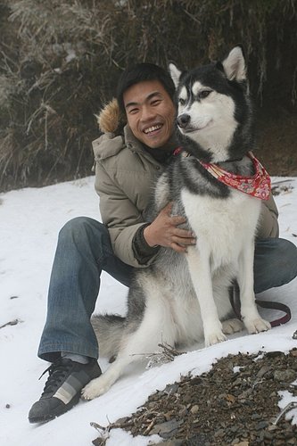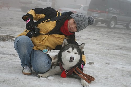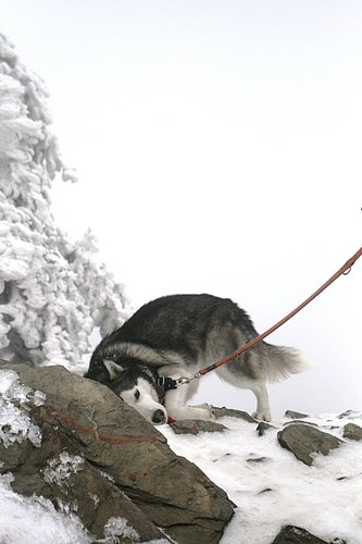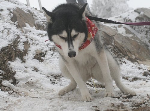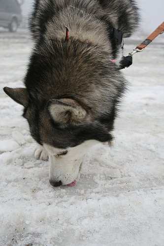 BOGI一碰到雪就一直舔,我們都想說他會不會被冰到,然後黏住舌頭...