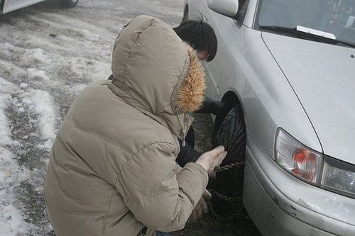 我們在一旁玩得很開心,妮卡爸搞去年買的雪鏈,弄了半天弄不起來