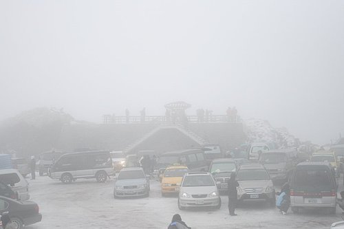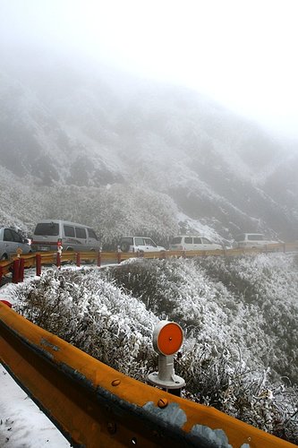 後來因為有老伯伯"好心的說"路面沒有積雪,所以就直接開上去了