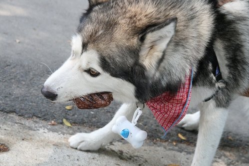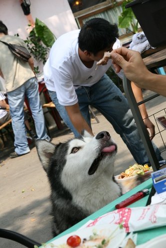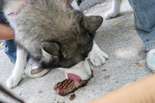 還先放在地上準備享用~~想也知道我們不太可能從他嘴裡拿走牛肉了 >
