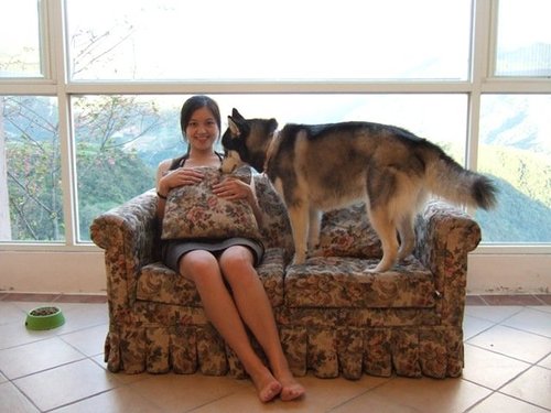 終於有機會可以兩人一犬入鏡...拍起來照片的顏色有點怪...勉強接受囉