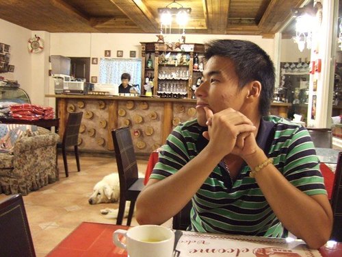 晚上六點我們下來準備吃晚餐有人說側臉比較好看...但是痘痘倒是不少 ><